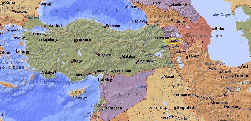 Montagne mythique s'il en est, le Mont Ararat ou Agri Dagi (si l'on veut utiliser son nom turc) culmine à 5165m. Cet ancien volcan, situé à l'Est de la Turquie, domine les frontières avec l'Iran, l'Arménie et l'Azerbaïdjan. Posé sur les hauts plateaux anatoliens, il est entré en éruption pour la dernière fois en juillet 1840.