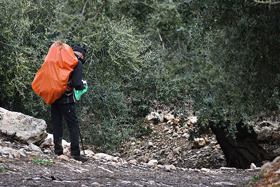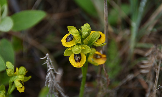 On traverse une série d'oliveraies avec de superbes arbres centenaires aux troncs tortueux. Au bord du sentier qui devient très boueux, des orchidées jaunes (Ophrys lutea) se laissent photographier et prennent même la pose sous le soleil qui revient timidement. Le temps s'améliore, il ne pleut plus et le vent se calme. On fera une halte bienvenue dans un café à Pulgarin Alto avec un splendide bocadillo, chaud et croustillant.