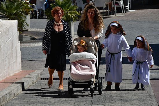 C'est le jour de la bénédiction des rameaux aujourd'hui ! Les anciennes, rameaux d'olivier à la main, attendent la sortie de l'église. Quelques fillettes en aubes blanches, coiffées d'un étrange foulard qui leur donnent des airs d'égyptiennes, vont et viennent au milieu des adultes.