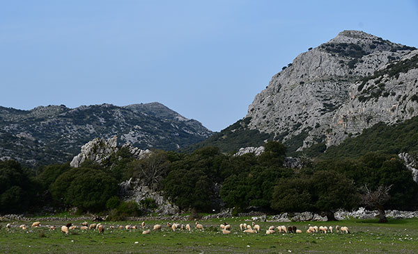 On a fait le pari de quitter Montejaque sans eau (ou presque) se fiant au guide qui signale une fontaine, un peu avant le refuge de Libar. On croise un couple de jeunes qui nous disent ne pas avoir vu d'eau. Plus loin, un berger motorisé nous baragouine quelque chose en espagnol qu'on ne comprend pas mais il nous donne une bouteille de deux litres d'eau.