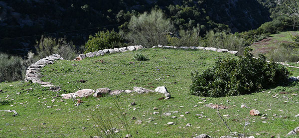 Mardi 16 avril. (jour 15) Grosse caillante ce matin et la tente est couverte de rosée. Faudra penser à la faire sécher en cours de journée. On quitte la Casa, un dernier regard en passant sur l'aire de battage et on entame la descente vers le fond du canyon pour franchir le Rio à travers un tunnel. On y rencontre un couple de français qui vont de Gibraltar à Séville sur le chemin de Compostelle.