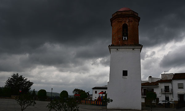 Longue descente sur Jimena de la Frontera. L'horizon bouché nous empêche voir bien loin. Le vent souffle fort sur les crêtes. L'atmosphère est humide mais il ne pleut pas. On aperçoit le château qui domine Jimena. Découverte du village sous un ciel plombé et quelques gouttes nous cueillent à la sortie du bar et de l'épicerie.