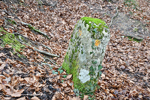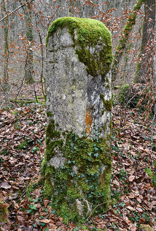 Borne d'env. 1,90m de haut. 1741 et PA gravés sur une face. Sur l'autre, une croix de Lorraine et le TAU grec. Sur la tranche, une croix. Coordonnées : N 48.91891° E 006.01906°.