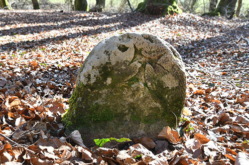 Borne au sommet arrondi. Le TAU est gravé sur une face. Archives départementales de la Meurthe-et-Moselle H 1734 : cession faite aux Antonistes par le commandeur de l'Hôpital Sainte- Elisabeth "aux Allemands", de ce que cet hôpital avait au "moulin du pré" à Lorry-sous-Froimont - 1356/1671. Document non consulté. Coordonnées : N 48.97638° E 006.07242°.