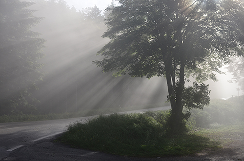 Au col de Giogo, l'auberge est fermée et on pique nique sur la terrasse, au bord de la route. Soleil et brouillard jusqu'à présent.