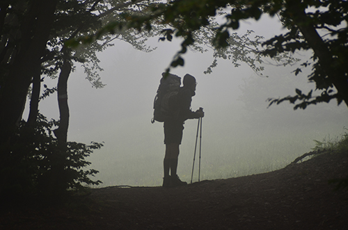 Départ de la cabane de chasse comme d'habitude un peu avant 7h. De belles grimpettes, courtes mais rudes, sur une sente discrète, nous emmènent jusqu'à la croix du Monte Gazzaro. Le brouillard nous cache la vue qui doit être superbe sur Florence. On laisse trace de notre passage dans le cahier et j'ajoute une nouvelle géocache à mon actif.