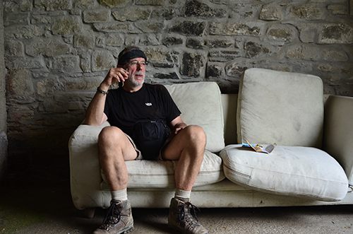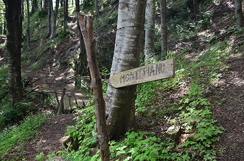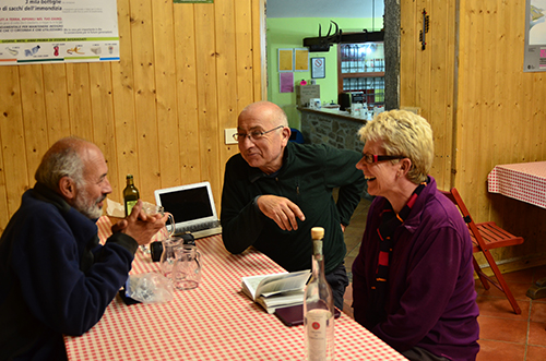 Je pars faire quelques photos sur un chemin de charbonnier et je rencontre nos amis anglais qui ont prévu de dormir au refuge. Soirée en commun autour d'une repas digne des meilleurs refuges de montagne, soupe arrosée d'huile d'olive, haricots au pain, viande, vin, dessert, vin doux, café et grappa à volonté ! J'en garderai longtemps le souvenir...