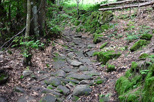 Toujours la hêtraie avec quelques arbres remarquables. Beau chemin creux dallé par endroit et semé de quelques oratoires.