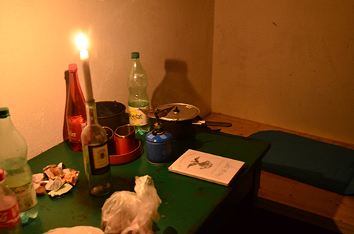 Des ouvriers s'y affairent pour la belle saison qui ne saurait tarder. Après palabres au téléphone avec une femme qui parle français, on s'installe dans la salle de bivouac. Un repas est prévu pour le soir. On évitera ainsi de piquer dans nos réserves qui s'épuisent tout doucement.