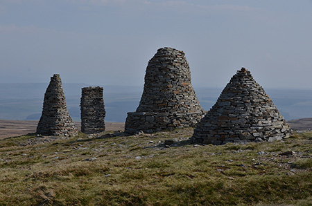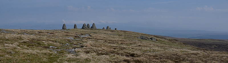 Neuf énormes cairns sont élevés sur le sommet (662m). Leurs origines restent un mystère. Ils sont déjà représentés sur les cartes du XVIIIème siècle. Cet endroit marque également la ligne de partage des eaux entre la mer d'Irlande et la mer du Nord. Erigés par les romains pour éloigner les écossais, simple passe temps des habitants du secteur, frontière entre la province de Cumbria et du Yorkshire... toutes les hypothèses sont permises... à vous de choisir !