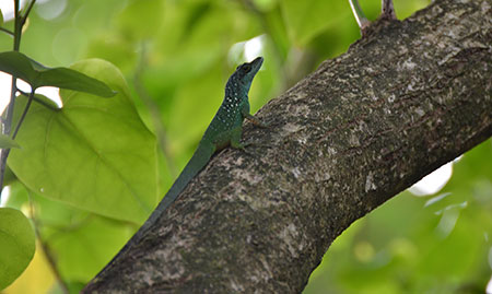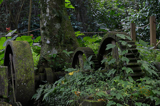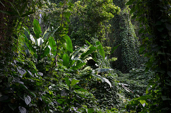 Denis (Anse couleuvre) : "Nous profitons du calme entre deux vagues et l'annexe vient glisser sur le sable noir. Marie venue à la nage depuis le bateau nous file un coup de main pour hisser l'embarcation et la mettre à l'abri. On s'enfile le long d'un petit sentier qui remonte le long d'un ruisseau. La végétation luxuriante nous cache le ciel et c'est dans une douce et chaude ambiance verdâtre qu'on déboule au milieu des ruines d'un vieil établissement agricole abandonné depuis 1944. Aujourd'hui rongées par les mousses, des chaudières aux gueules béantes contribuent à donner à cet endroit un charme étrange."