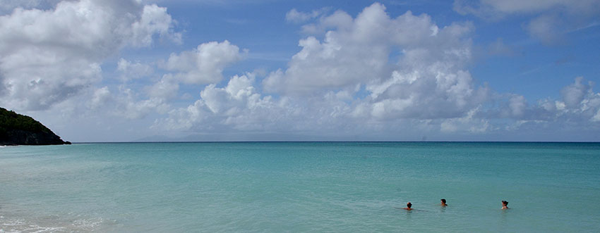 Denis (de la Dominique aux Saintes) : Il en est de certaines îles comme des passantes de Georges Brassens, celle qu'on voit apparaître une seconde à sa fenêtre et qui preste s'évanouit, mais dont la svelte silhouette est si gracieuse et fluette qu'on en demeure épanoui. La Dominique est de celle là ! Bien que meurtrie, elle semble accueillante, prompte à garder le visiteur dans ses bras. Je me souviens des petits villages aux façades très colorées, des maisons sur pilotis accrochées aux pentes abruptes, des vallées profondes. Six heures de navigation pour atteindre les Saintes. Le bateau se faufile entre Terre de bas et Terre de haut. On laisse la Pointe nègre, le Cheval marin et le Gouffre à chien sur notre babord. A tribord, c'est plein soleil sur la Pointe du bois-joli. C'est dans l'anse à Coînte qu'on passera la haussière dans le corps mort."