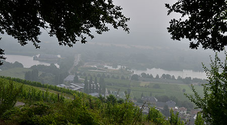 Trois petites caches en passant et je retrouve la vallée de la Moselle, au niveau de Rémershen. C'est un peu brumeux, dommage !