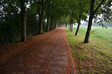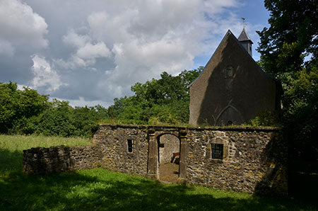 Je monte dans les bois vers Stadtbredimus où j'espère poser la tente. Je déniche le Napoléonshout, enclos circulaire entouré d'un fossé. Endroit énigmatique mais c'est une bonne place pour ma tente.