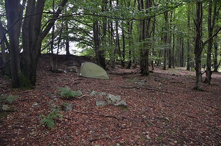 Je monte jusqu'au Rond Chêne et la pluie recommence. Je n'ai pas envie de me retaper une journée comme celle d'hier. Il n'est que 10h mais tant pis, je monte la tente pour une journée d'attente. Je serai au moins au sec... Siestes entrecoupées de thé et de lecture. 17h, je tente une sortie rapide pour casser une petite graine. Parait que demain sera bien !