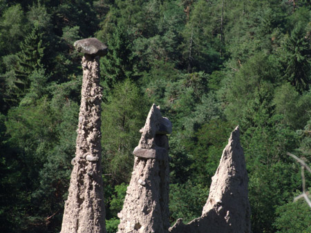 Beaucoup de macadam (dommage) et rude montée vers les pyramides de Segonzano : des demoiselles coiffées. Les voir le matin et tout seul, c’est assez impressionnant.