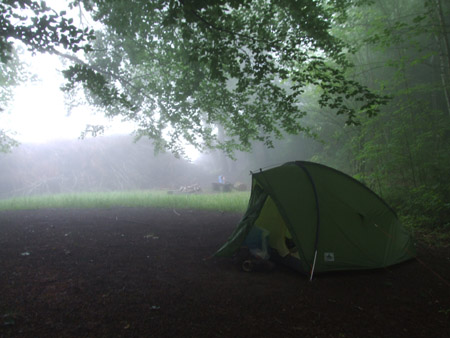 Dpt 8h fin 13h34 total 5h40 Asc 335m Dsc 575m Réveil 6h30 dans le brouillard. Finalement, le temps que je prenne un thé et que je range le camp, le temps a l’air de se dégager.