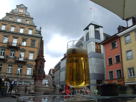 Retour à Hersberg où je vois la connerie que j’ai faite ! NE JAMAIS S’ENTETER !! Je le sais pourtant !! J’ai bien perdu 1 heure avec ces conneries. Montée vers le Hard où je croise un pauvre monsieur tout rouge près d’une fontaine. Pause casse croute et arrivée à Chilholz. Montée au Linnersberg et sa belle feuerplatz. Plus tard, je croise un vététiste surpris en train de pisser… il me dit quelque chose que je ne comprends pas et finit par me dire en français : « je suis seul depuis 2h et juste comme je m’arrête pour pisser –en français dans le texte- voilà quelqu’un… ». Ca fait du bien de rigoler un peu. A Linn, un bus part pour Brugg. ¾ d’heure d’attente… mais Vierlinden n’est qu’à 35minutes à pied… j’y vais donc d’un bon pas. Mais arrivé à Vierlinden, c’est la même ligne de bus et je l’ai loupé de 3 minutes. Maintenant, j’ai 1h à poireauter dans un abribus. C’est la vie du marcheur ! Ca y est : bus, Brugg, gare où je prends mon billet pour Konstanz. Départ, demain à 9h. Hôtel Terminus, tour en ville… toute petite ville. A part le quartier de la gare, y a pas grand-chose et à 19h, plus personne.
