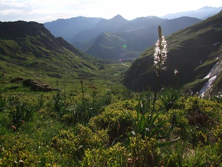 Descente dans des prairies gorgées d’eau, ça ruisselle de partout et les asphodèles jettent leurs mille étoiles sur le ciel bleu.