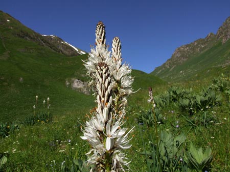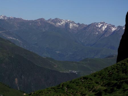 Mercredi 23 juin Plat 1600 près Germ au Lac Sausset Lever : 6h50 Départ : 7h30 Arrivée : 14h38 Durée : 7h08 ( y a du mieux) Asc : 1435m Desc : 1075m Depuis deux jours, ça caille le matin et je rechigne à sortir du sac… pas étonnant, l’herbe craque sous la gelée blanche tout autour de la tente. Je l’ai trouvée raide cette montée au Couret d’Esquierry mais, encore une fois, cette arrivée en haut du col au moment où on se prend le soleil en pleine poire… quel plaisir ! Une marmotte a même salué mon arrivée de son cri strident. Beau col avec une belle vue plongeante sur la descente qui m’attend : superbe vallée perchée dans les alpages d’un vert dense. Puis de multiples lacets en forêt pour arriver dans un nid à camping-car, collégiens et autres randonneurs… depuis le retour du beau temps, y a du monde en montagne ! Ce qui était spectaculaire en haut du col d’Esquierry, c’est que je voyais le Col de Portet, le Pla du Castillon (bivouac d’il y a deux jours…) et peut-être même le Col de Madamète…