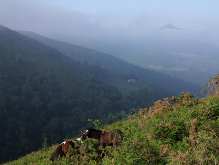 Belles ambiances, belles enfilades de cols, belles vues superbes comme celle de la Rhune qui émerge de la brume matinale.