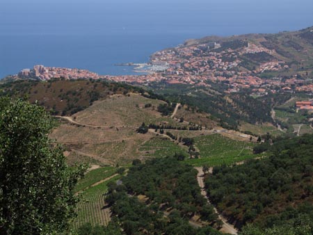 La mer se rapproche de plus en plus, je peux deviner maintenant les bateaux et leur sillage blanc sur bleu et Banyuls au fond de sa rade…
