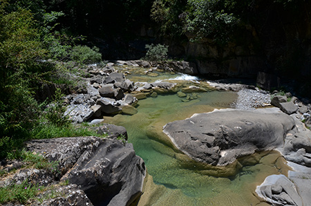 Descente raide et un peu sauvage jusqu'au barranco Barbaruens, havre de fraîcheur. Le torrent est magnifique. J'ai longtemps hésité avant d'y plonger. Mais c'est trop froid pour moi... j'y ai juste rincé mon t-shirt et trempé les pieds. J'en connais qui n'auraient pas hésité !