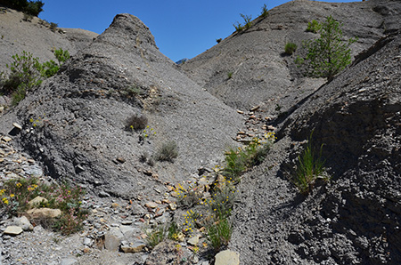 L'ermitage de san Pedro de Tabernes puis un petit col qui ne paye vraiment pas de mine mais sous le soleil, faut se le faire. Drôle d'endroit où l'on serpente entre des monticules de marnes (?).