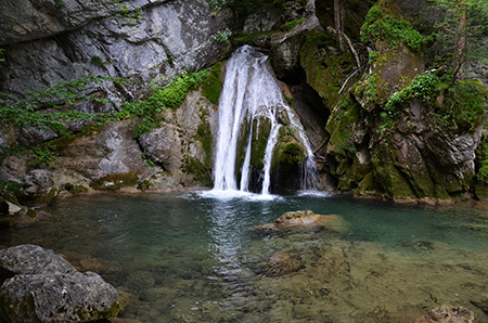 Jamais vu un ciel aussi noir que ce matin... Je dépasse la cascade de Belabarze sans la voir. Je pose donc mon sac à un petit col et je redescend à vide. Le coin vaut le coup d'œil. Deux petites échelles en bois permettent d'accéder au pied de la cascade. Je trouve la géocache avec un peu de mal (faut dire que le hint est écrit en espagnol, ce n'est pas très clair pour moi). Mais la boîte est bien là.