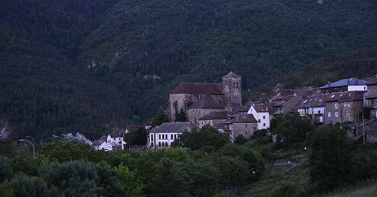 Cette vallée doit être belle sous le soleil... De rares voitures passent sans s'arrêter. Fin de journée morne et humide. Qu'importe, je suis sur le début du GR15. Encore une petite auberge de montagne où je pose mon sac. Je me promène dans le village et vais déjà repérer la suite du chemin pour demain. Anso est un beau village de montagne. Son église, comme toutes les autres, est monumentale et austère. Ce sont de véritables bastions qui émergent des maisons serrées tout autour. Un entrelacs de petites ruelles pavées où quelques enfants font du vélo. De rares passants vous saluent d'un hola discret.