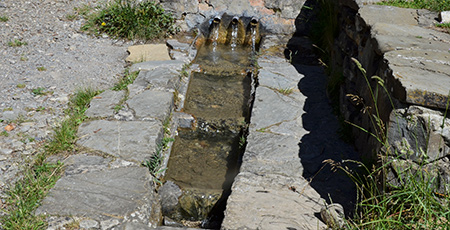 Personne... De gros arbres qui projettent une ombre accueillante sur une prairie douce aux pieds, des tables et des bancs, une fontaine et ses trois bouches d'où coule une eau limpide et fraîche, une géocache, tout ça fait que je n'ai guère envie d'aller plus loin aujourd'hui ! Sûr que cette étape est bien petite mais ça compense celle d'hier. Et je ne suis pas certain de trouver un coin aussi accueillant plus loin. Allez, je plante la tente !