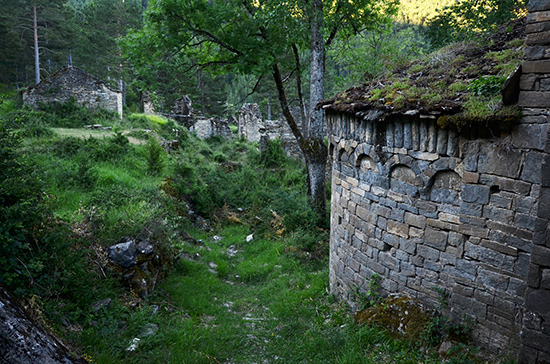 Après la traversée du barranco o Monde, je quitte la piste pour descendre sur Larrosa, village abandonné depuis les années 50/60 suite à une politique de reboisement des Pyrénées.