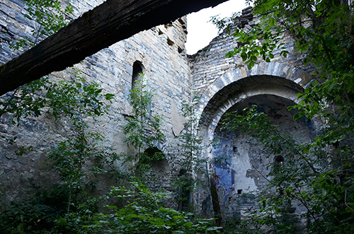 L'église est encore debout, c'est l'édifice le mieux conservé. La toiture est effondrée par endroit mais l'autel, les fonds baptismaux et les cloches donnent à cet endroit quelque chose de sacré... comme une survivance d'un vieux rite oublié, comme un endroit préservé et entretenu par quelques chamanes qui pourraient surgir au détour d'une ruelle. Ce n'est pas un endroit anodin.