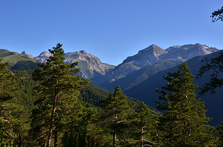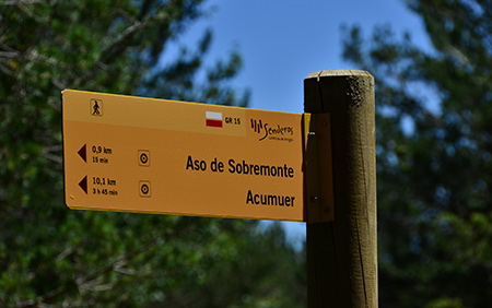 Je fais le plein d'eau avant d'attaquer le gros morceau de la journée, le col Estachoplano avec ses 600m de dénivelé que je monte en deux heures. Vue magnifique sur la sierra de la Partacua. Le GR15 est toujours aussi bien balisé. Les distances indiquées diffèrent un peu de celles données dans le guide. Pour Biescas, la distance annoncée depuis le col n'est que de 10km pour 3 heures... ça peut donc le faire. Il est midi et je peux être à Biescas aujourd'hui.