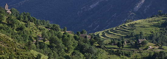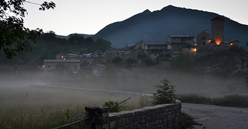 Départ 7h20. Paysages aride de buis et de rocailles entrecoupés de quelques barrancos à secs. Je passe Nerin puis Sercué avec chaque fois une petite halte auprès des fontaines pour se débarbouiller un peu de la sueur de la veille et avaler de grosses goulées d'eau en prévision des moments un peu secs de la journée...