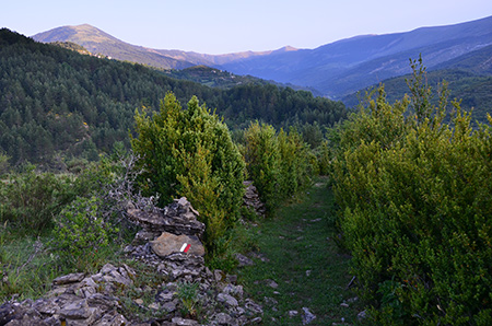 Collado Sestrales, petit replat herbeux avec une superbe vue jusque Fanlo, Buisan où j'ai passé la nuit. Le canyon est passé. Je n'ai pas assez d'eau pour poser le bivouac, faut donc que je continue. Descente puis remontée raide jusque Bestué où il y a même un bar pour un petit coca bien frais. Je fais le plein d'eau devant une famille espagnole qui prend le frais à l'ombre d'un arbre. Le jet du robinet est fort, je m'en mets plein les godasses et ça fait rire les enfants.