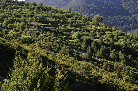 Réveil matinal à 5h. Je boucle mon sac dans la pénombre du camping endormi et je me mets en route vers 6h. A partir de Sarvisé, le GR15 new style emprunte un chemin différent du guide. Il serpente en rive droite du barranco Xate, à flanc de montagne. Il suit grosso modo les courbes de niveau entre 1100 et 1200m.