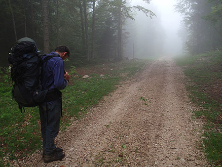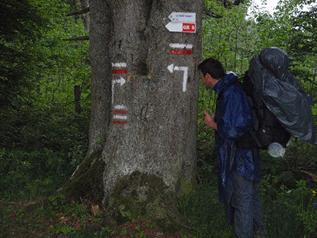 Lever dans une purée de pois qui va durer jusqu’aux Rousses. Traversée fantomatique des forêts du Risoux. A l’image de la traversée du Jura, temps dégueulasse, rien à voir, des forêts, des forêts, des forêts…