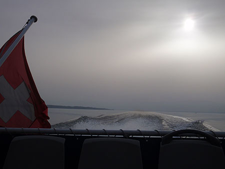 Laurent me quitte aux Rousses et j’enchaîne avec un doublée d’enfer : le petit train touristique de la Cure à Nyon et bateau jusque Thonon… faut pas refuser des transports sympa quand ils se présentent… Je suis parti depuis 1 mois et j’arrive à Thonon vers 19h. Je trouve un hôtel où je vais passer deux nuits à me reposer un peu…