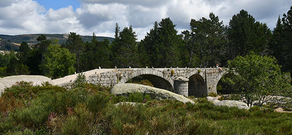 Le Col de Finiels (1541m) suivi d’une superbe tirée dans un paysage très ouvert, rocailleux et désert. Et le soleil matinal par-dessus tout ça, l’imagination a de quoi se laisser aller. Et puis soudain, on tombe sur la vallée du Tarn… oh, faut avoir l’œil averti pour la deviner. De loin, ce n’est qu’une vague dépression, un soulèvement, une ondulation de la terre. En se rapprochant, quelques méandres sont plus visibles avec, quelquefois un miroitement, un éclat de lumière qui laisse présager de l’eau au milieu de ce désert de cailloux. Enfin, apparait le ‘’Premier pont sur le Tarn’’. Superbe ouvrage qui en fait un spot touristique très prisé, il y a du monde !