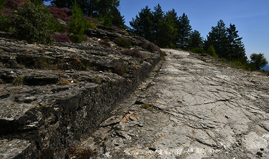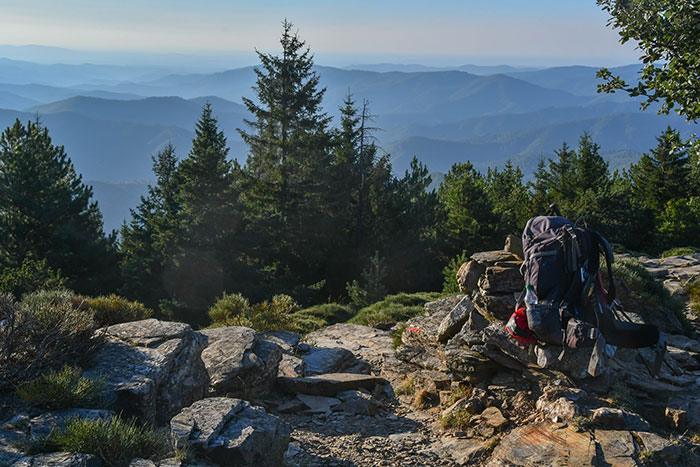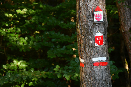Suivant mon habitude, je sors de la tente à 6h et vais toquer aux vitres de la voiture pour réveiller Yves. Pendant que je plie la tente et remplis mon sac, il prépare le petit déjeuner, café et petits pains au chocolat. On se quitte et je me lance dans la grimpette vers le col de Jalcreste. Terribles, ces montées dans les pare feux qui sont taillés droit dans la pente à travers les forêts. De magnifiques points de vue s’ouvrent régulièrement et invitent à la pause.