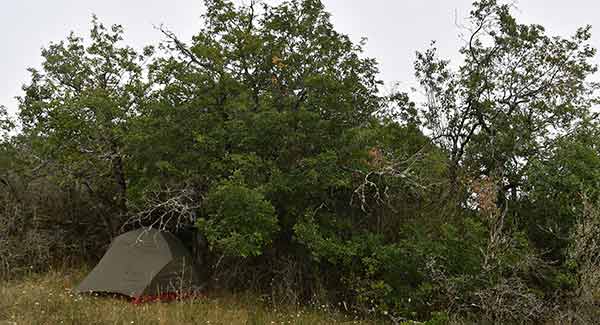Une dernière montée et je déniche un coin pour la tente au sommet de la butte après Meloisey. Il est encore tôt mais si je continue je ne pense pas trouver un autre endroit avant un petit bout de temps. Et j'ai marché 7 heures, c'est bon, je me pose !