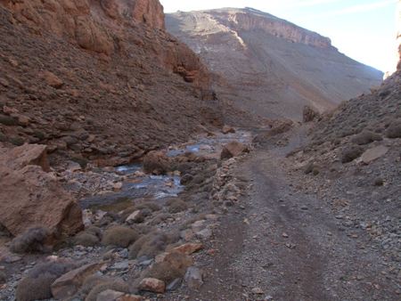 Route, route, arrêt bouffe à Agdz (bol de soupe et thé) et on arrive à Zagora, au camping de la montagne désert et fermé.