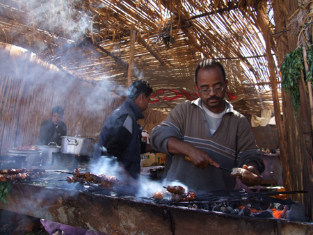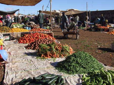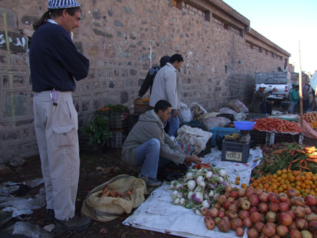 Samedi 1 er novembre. Tempête de sable toute la journée et pluie le soir. Sieste l’après midi et différentes bricoles à faire. Soirée couscous chez Mohamed. Dimanche 2 novembre. Courses au souk avec les deux fils de Mohamed, achat de vivres.
