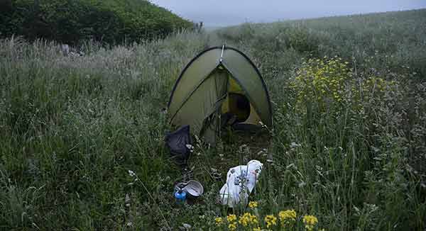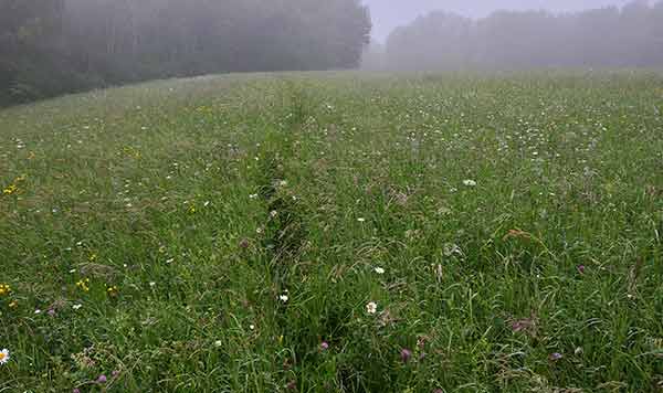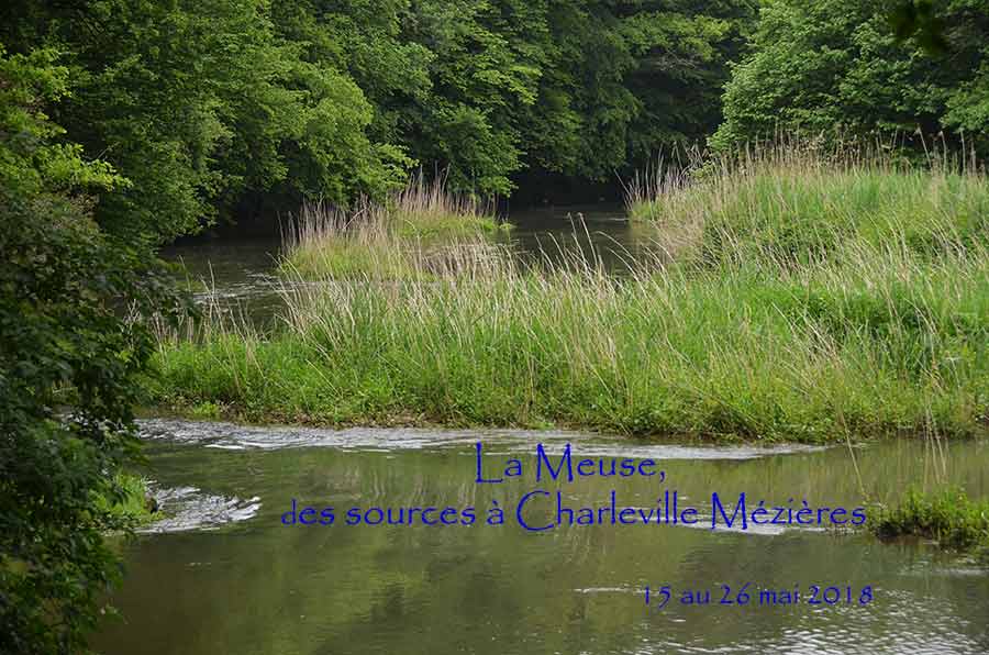 Depuis le temps que je randonne avec ma tente et ma gamelle, je me suis rendu compte que le paysage compte moins que cette impression de liberté totale qu'on peut ressentir avec ce genre de randonnée en solitaire. C'est donc sur les fameuses cartes au 25 000 ème que j'ai tracé mon itinéraire. Pistes forestières, chemins agricoles, lisières, sentiers oubliés et abandonnés, pâtures dont il faut escalader les barbelés et éviter les troupeaux de génisses un peu fofolles... et un peu de macadam quand même m'ont conduits des sources de la Meuse (Pouilly en Bassigny) jusque Charleville Mézières, ville où naquit Rimbaud et de qui je cite ce poème : J'ai embrassé l'aube d'été. Rien ne bougeait encore au front des palais. L'eau était morte. Les camps d'ombre ne quittaient pas la route La première entreprise fut, dans le sentier déjà rempli de frais et blêmes éclats, une fleur qui me dit son nom. Je ris au wasserfall blond qui s'échevela à travers les sapins : à la cime argentée je reconnus la déesse. Alors je levais un à un les voiles. Dans l'allée, en agitant les bras. Par la plaine, où je l'ai dénoncée au coq. En haut de la route, près d'un bois de lauriers, je l'ai entourée avec ses voiles amassées, et j'ai senti un peu Au réveil il était midi.