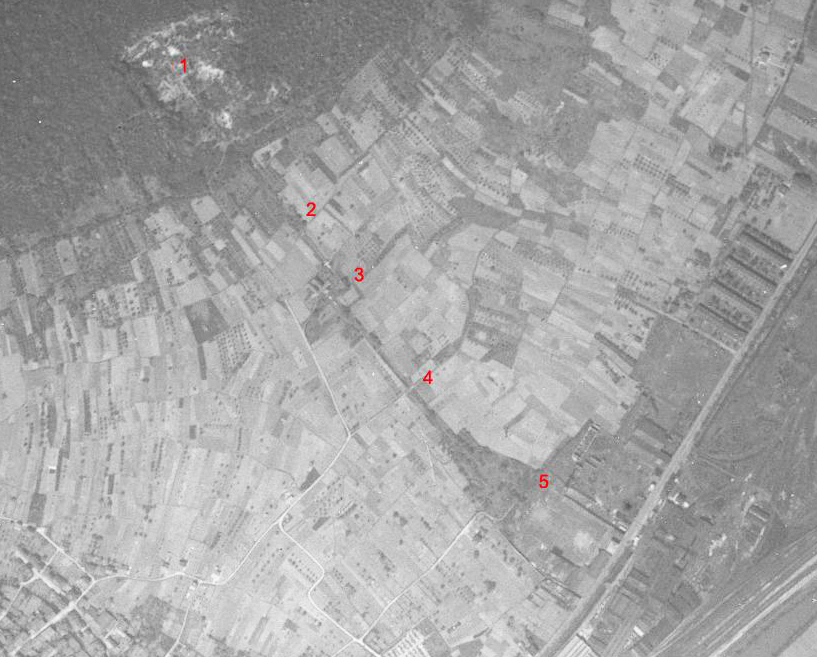 Plan incliné pour la descente du minerai et de la castine aux usines St Paul et St Benoit. A cet endroit, le plan incliné est construit en élévation et passe au-dessus d’un pont. A la base de ce pont, un petit conduit est visible en amont et en aval. S’agit-il du reste d’une conduite pour l’eau d’exhaure ou la trace du plan incliné souterrain destiné à l’usine St Benoit ? |
