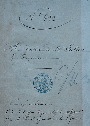 M. Julien. Elève ingénieur. Ecole des Mines. Paris. 1857(Extrait de son rapport concernant les minières d'Ars sur Moselle. A la même époque, cet élève ingénieur a visité également les mines de Novéant sur Moselle).