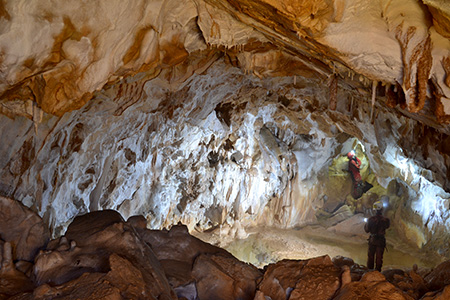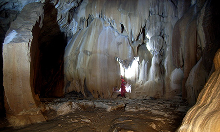 Chamane : puits très concétionné qui se poursuit par une fissure impénétrable (environ - 32m).