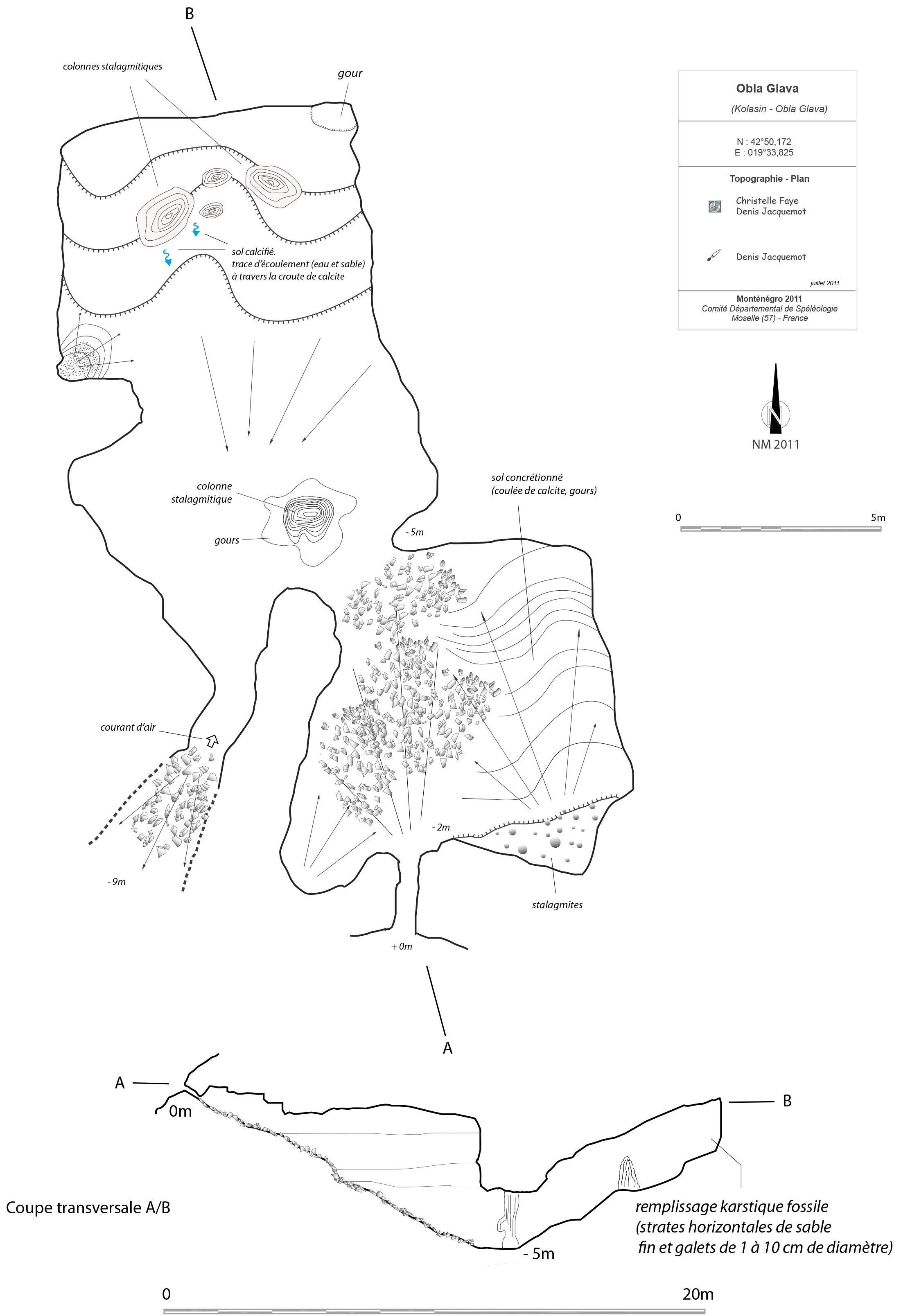 Obla Glava 1 : karst fossile avec deux salles très concrétionnées. Un important remplissage de sable et de galets est un témoin géologique d'importance pour la connaissance du karst local.