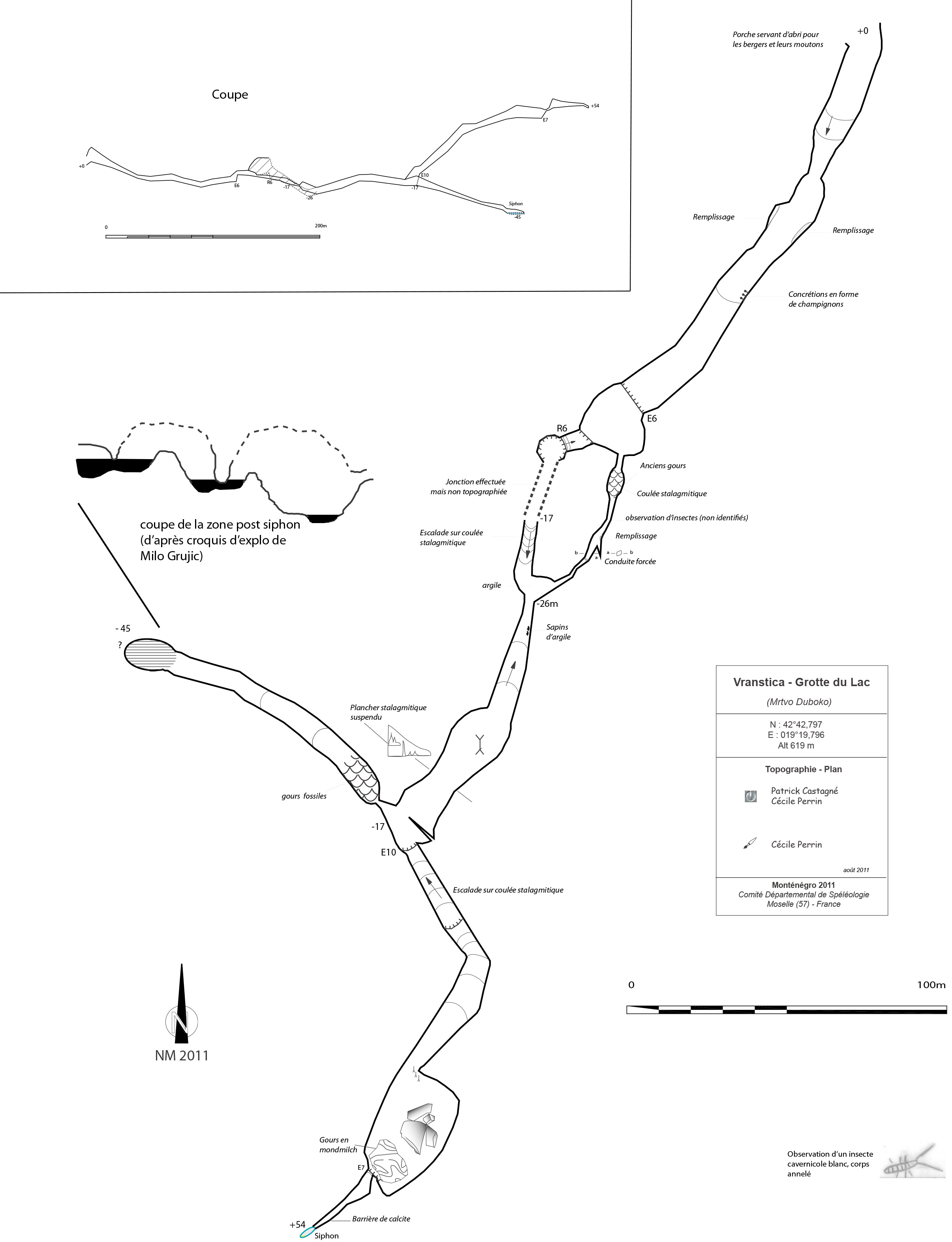 Vranstica (grotte du lac) : vaste réseau fossile très concrétionné. Il donne accès à un réseau actif (-45m) très ventilé. On y accède par une succession de siphons (ou voûte mouillante, suivant la saison). Une suite a été entrevue en hauteur mais non explorée.